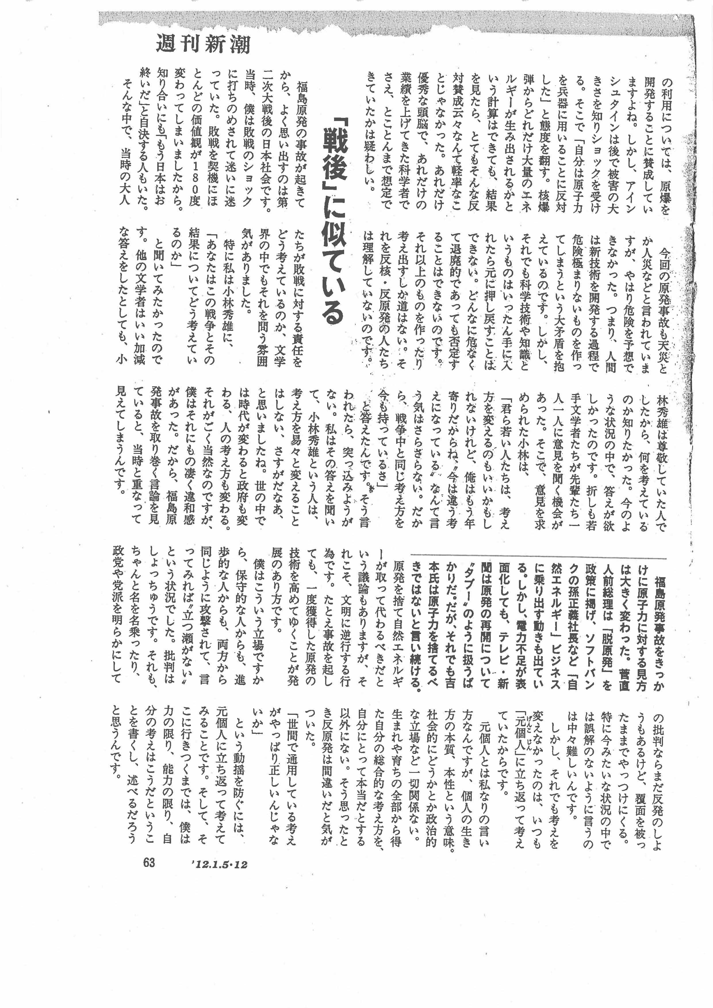 一番下に、吉本隆明氏の書いた意外な記事を貼りました。