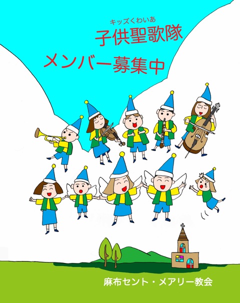 こちらは麻布セントメアリー教会の依頼で描いた、キッズクワイア「子供聖歌隊」の募集ポスター。