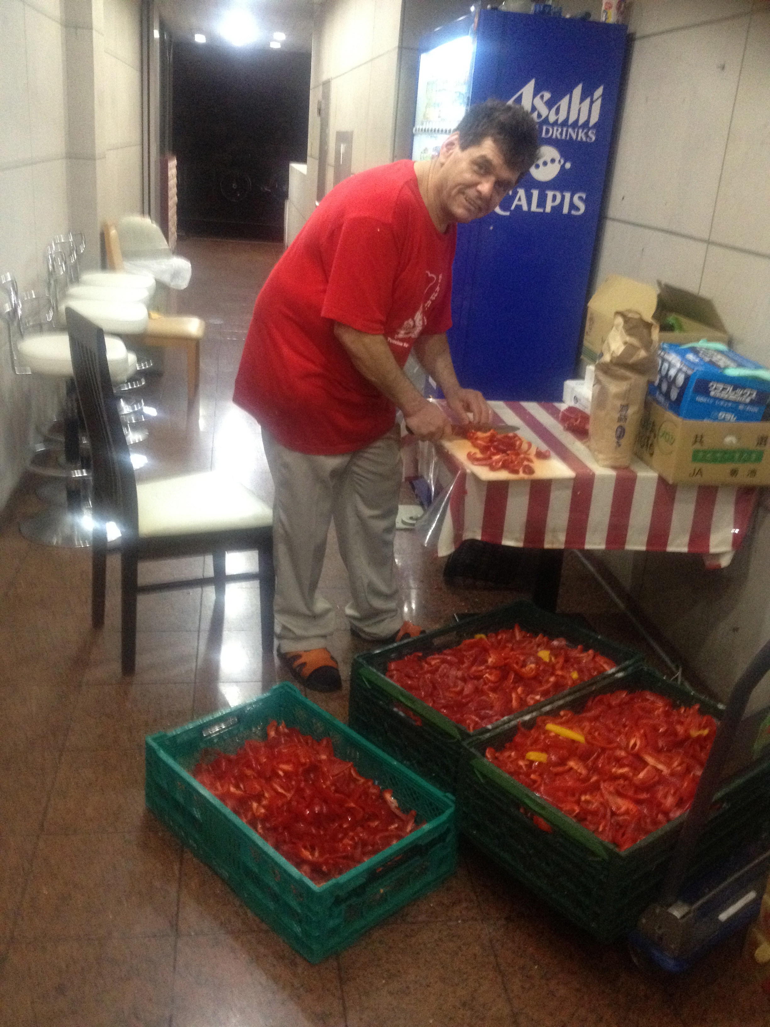 全部で12箱という大量のパプリカを前にご満悦のレベントシェフ。