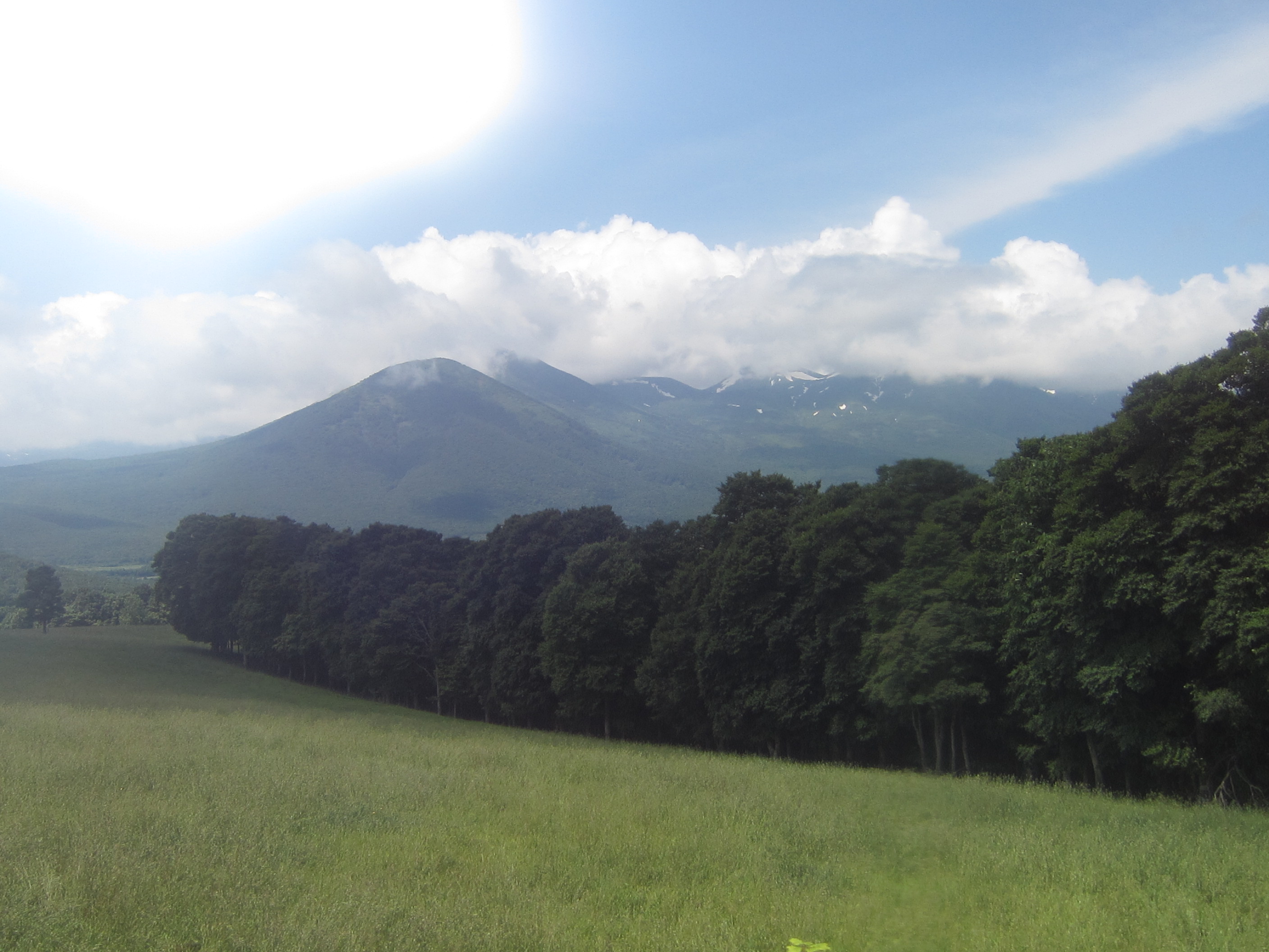 八幡岳は見ての通り、昔の噴火跡地でしょうか。牧草地でいっぱいなのですが、山に木がないと地滑りが起りやすくなりますし、水回りにしても良くありません。