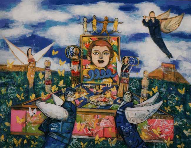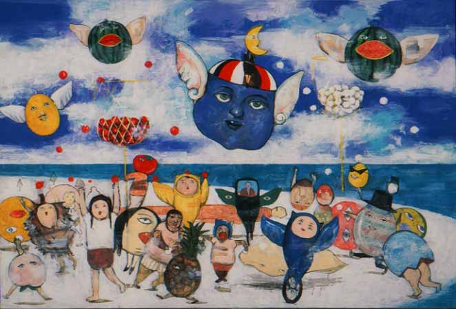 ポップな表現を、古典的な素材・テンペラでやりたかったというわけです。