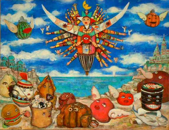 でも、そのせいか、チキンも桃もザクロもハンバーガーもおにぎりも、